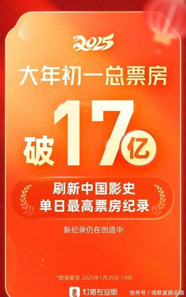 法例1月29日19时,2025年大年月吉总票房超17亿元