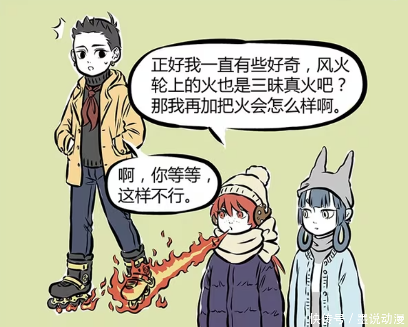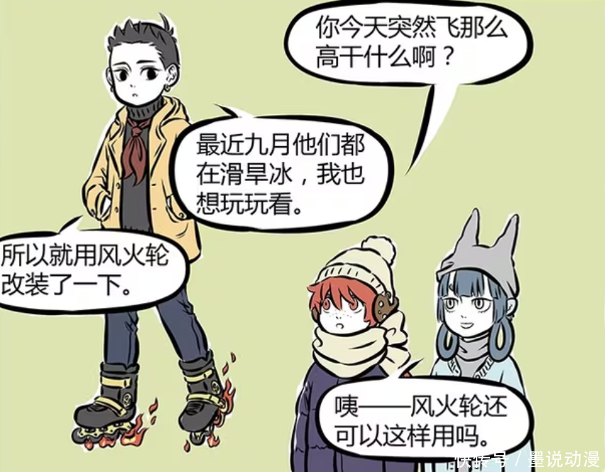 红孩儿和龙女发现哪吒最近有变化,风火轮不再酿成滑板,而是酿成旱冰鞋。哪吒告诉他们,这是因为最近九月他们王人在玩旱冰,是以他才会将风火轮酿成这个方法。龙女还不知谈风火轮还可以有如斯变化,看来这神器还挺种种化。
