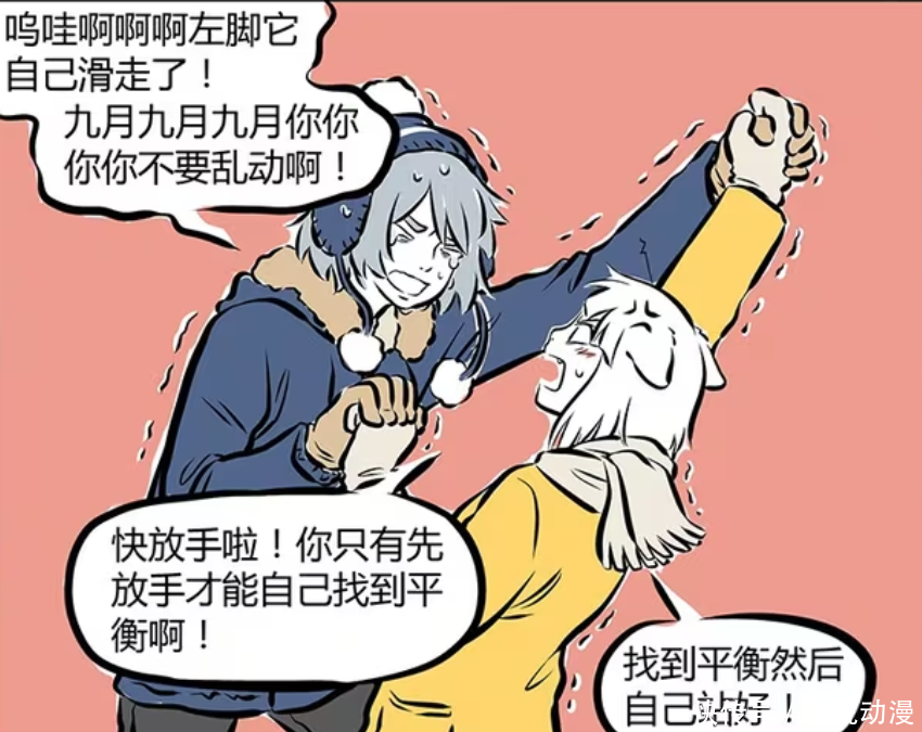 《非东谈主哉》漫画版,因为哮天永久无法我方学会滑旱冰,是以九月手把手陶冶。没念念到酿成相比暗昧的作为,收尾被哪吒拍下来。因为九月和哮天最近王人在滑旱冰,是以哪吒才将风火轮酿成旱冰鞋。红孩儿还给风火轮加三昧真火,收尾哪吒奏凯被奉上天。