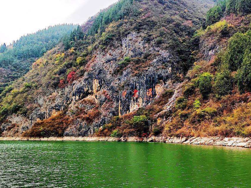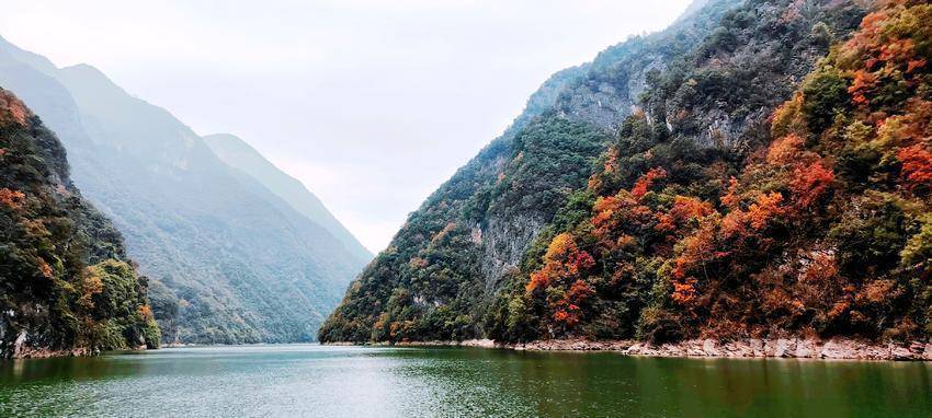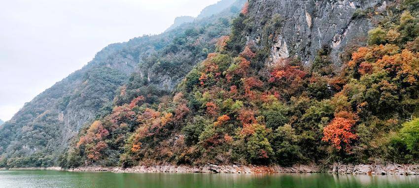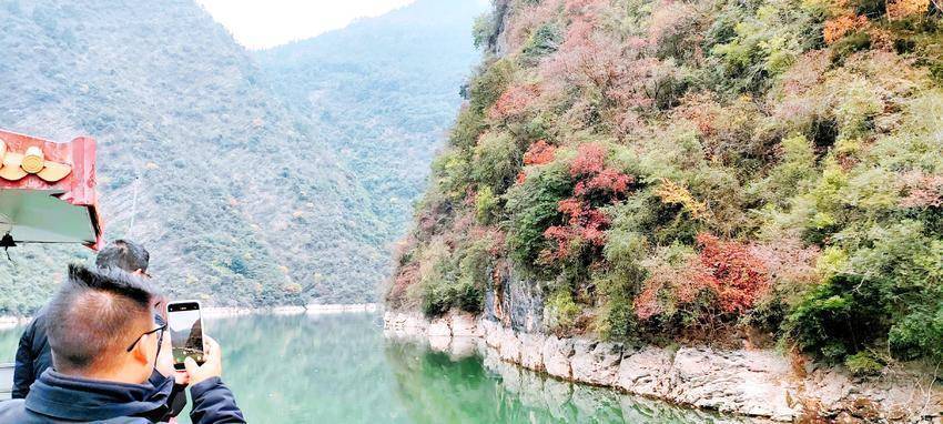 湖北日报客户端讯(通信员向国大)时值冬至,乘游艇游神农溪,只见碧绿的溪水如明镜般反照着两岸山峦,那正本层林尽染的山岭,此刻在冬日的晕染下,红叶更显秀逸夺目。