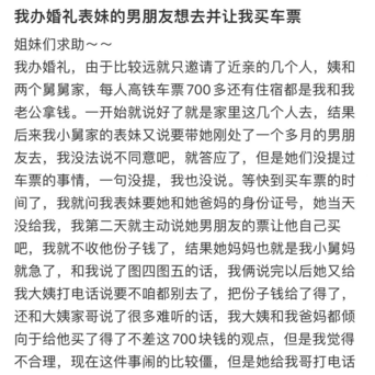 我办婚典表妹的男一又友念念去并让我买车票 世博体育