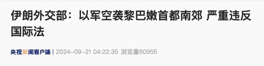 △以军空袭贝鲁特南郊央视新闻报说念配图