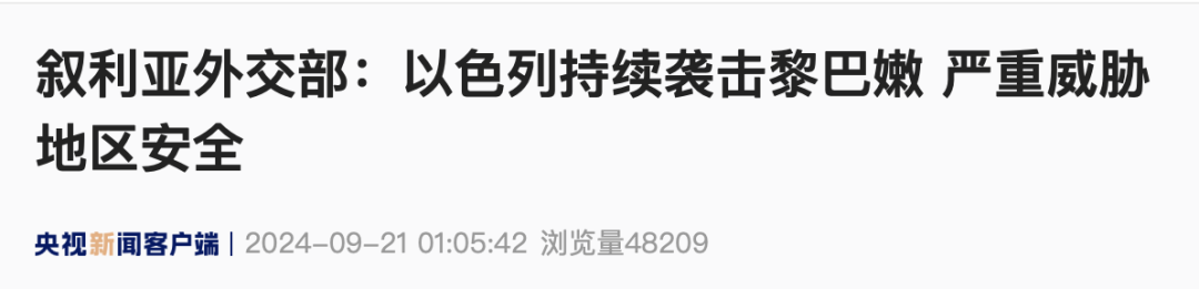 声明称,以色列的滋扰步履导致多东说念主物化、多半无辜黎民受伤,叙利亚对以色列的弥留暗示责问,称以色列捏续弥留黎巴嫩的步履对地区安全组成严重恐吓。声明同期激烈责问好意思西方国度为以军开展弥留提供军事和政事救济。