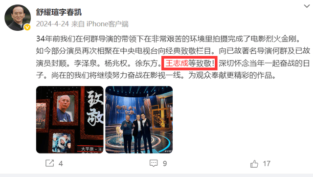 另外,演员舒耀瑄在前年4月曾发文担心,两东说念主曾相助拍摄《猛火金刚》,其时剧组重聚,舒耀瑄向已故导演何群和已故演员封顺、李泽泉、杨兆权、徐东方、王志成等问候,如斯来说,王志成如实不在了,许多圈内好友也皆知说念。