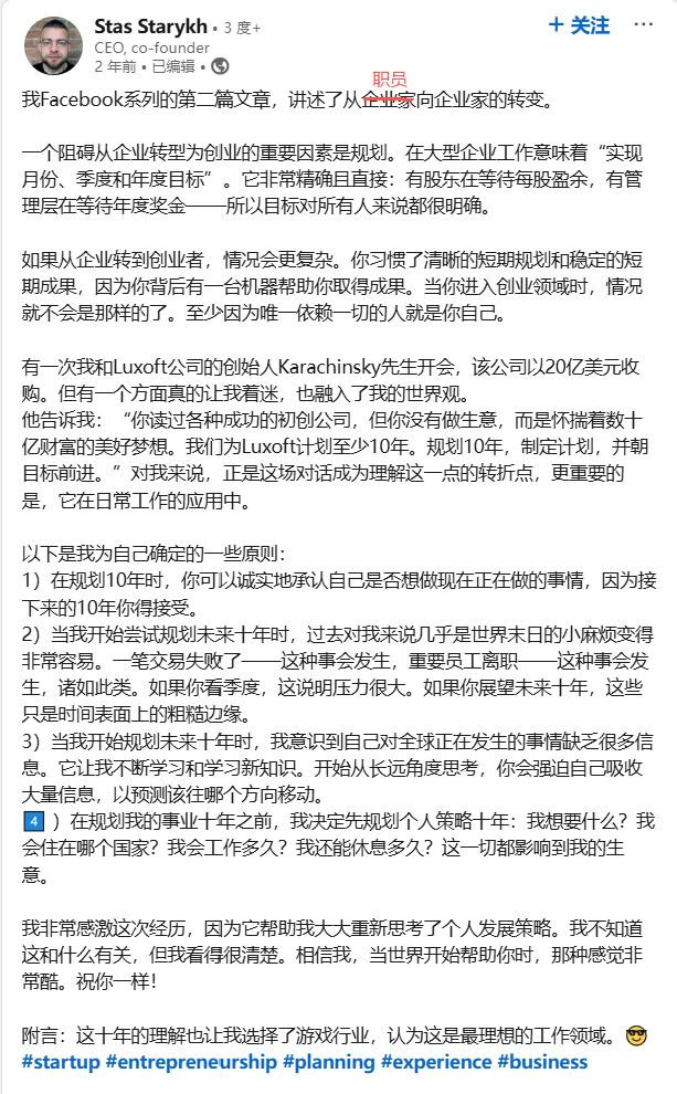 Brigada Games的CEO Stas Starykh是从销售动手作念起的,这与咱们平时以为的“游戏东说念主”不同。