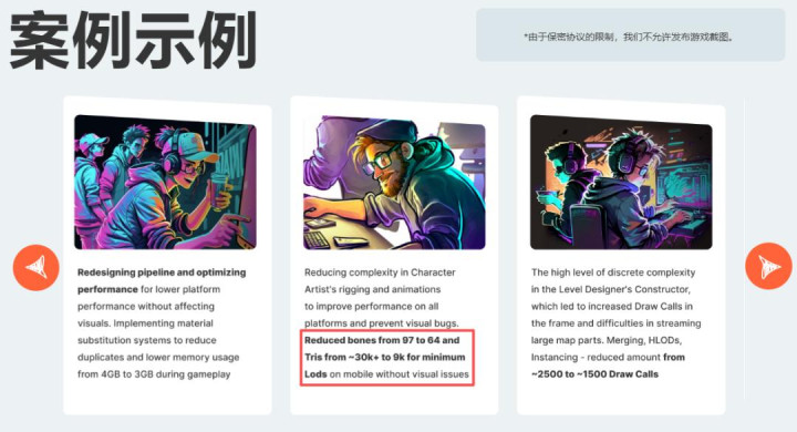 从官网了解到,他们曾成效将一款游戏的骨骼从97个优化至64个,三角形面数从约3万削减至9千,并勤俭了1-2毫秒的游戏线程时候,确保了在低性能平台上的运动运行。这种深厚的本领积淀,为其日后开发我方的游戏打下了坚实基础。