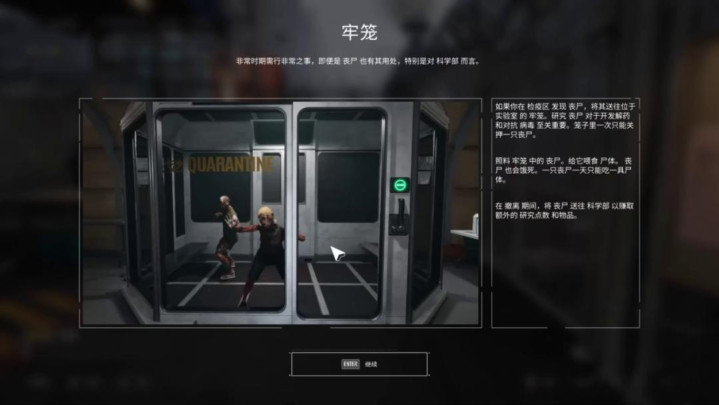 除了通例的奖励,《检疫区:终末一站》还有一种报告丰厚的方式——“圈养丧尸”。玩家不错将检疫区内阐明感染并变异的东说念主员圈禁起来,通过逐日喂食尸体防守其“存活”状态。到了依期输送的日子,这些活体样本不错被送往高等议论机构,以交流大量的资金和议论点数。