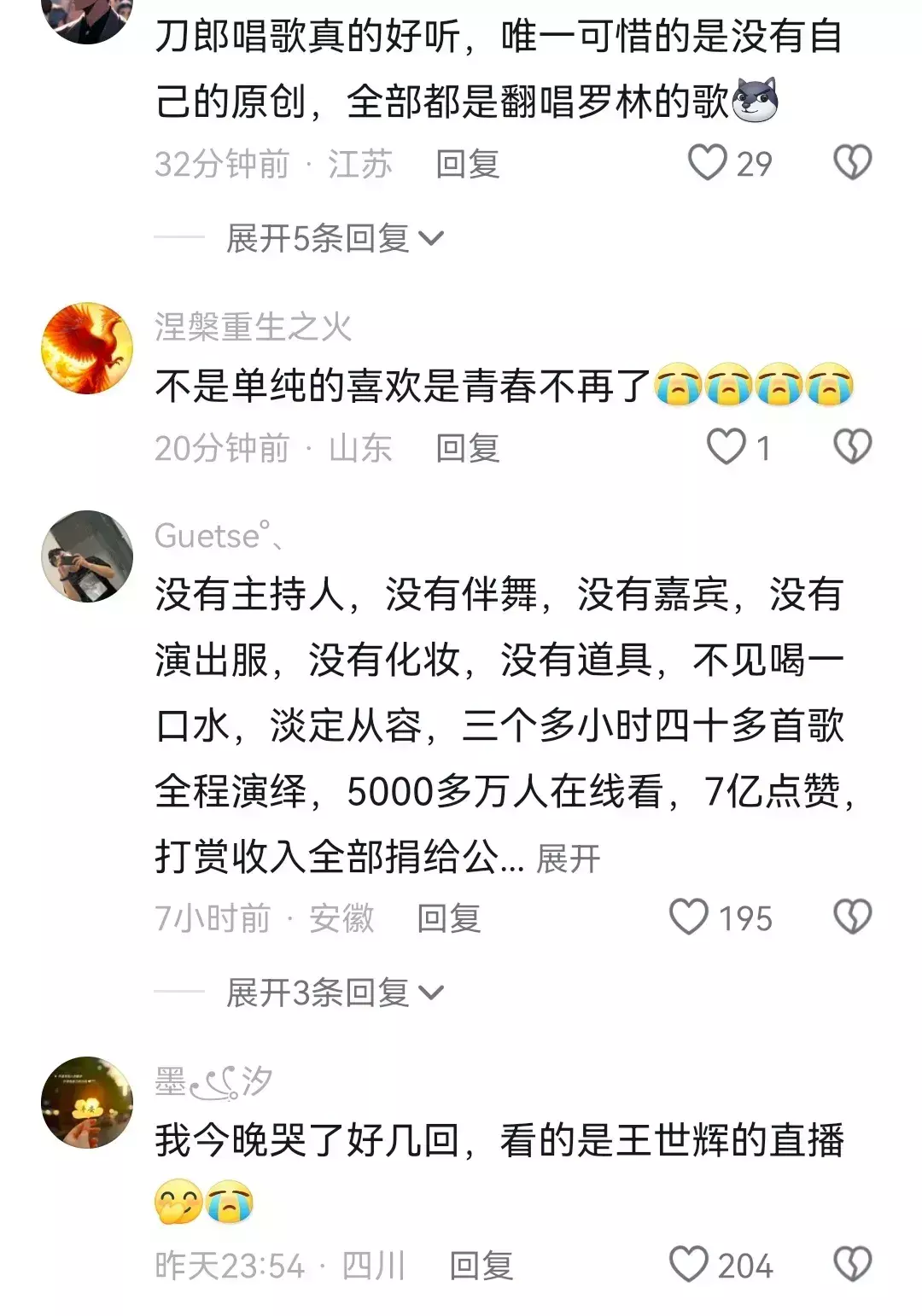 料想的是,不少网友开动共享我方听刀郎歌曲的资格。有东说念主说第一次听《2002年的第一场雪》是在高中教室里,那时还不懂歌词的含义,现时再听却有了不相通的感受。还有东说念主说每次KTV必点《西海情歌》,唱到动情处老是会想起我方的初恋。