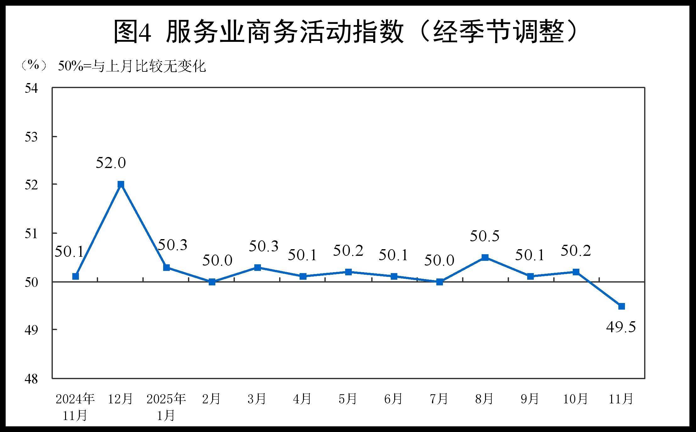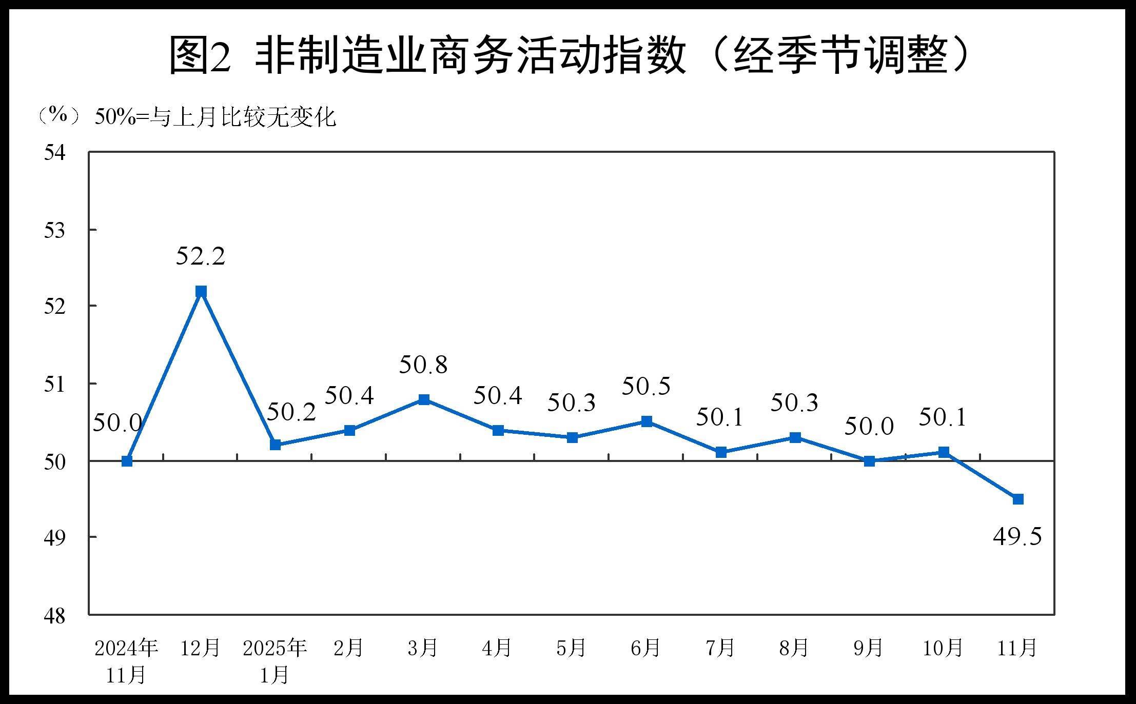 11月份,非制造业商务手脚指数为49.5%,比上月下落0.6个百分点。