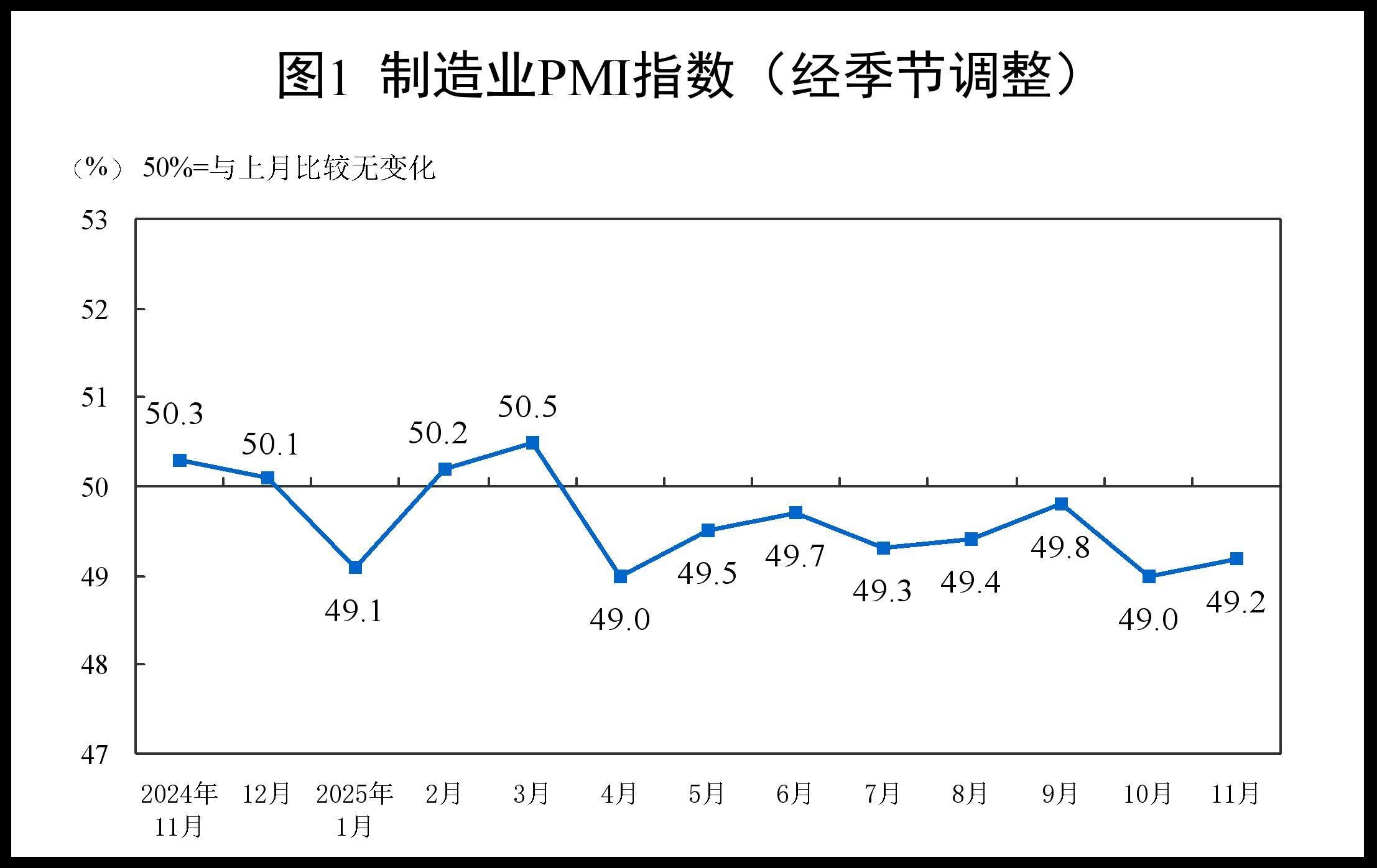 【大河财立方音书】11月30日,国度统计局网站深入,11月份,制造业采购司理指数(PMI)为49.2%,比上月飞腾0.2个百分点,景气水平有所改善。