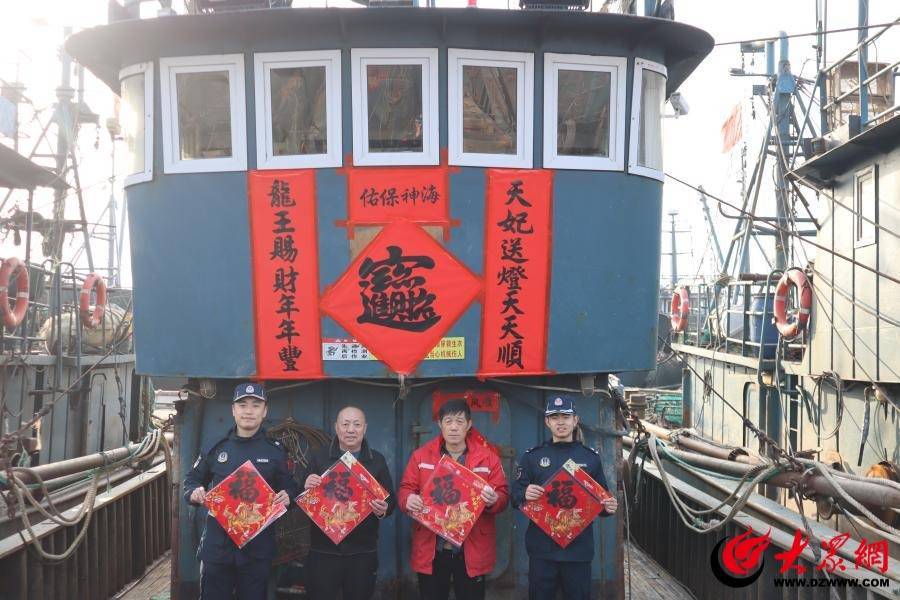 r为进一步拉进海警与辖区渔各人人的距离,营造温馨祥和的节日氛围,2月13日,潍坊海警局寿光责任站组织法律讲授员深远辖区渔港船埠,为渔各人人们送去全心准备的春联和“福”字,将新春的道贺送到众人心中。