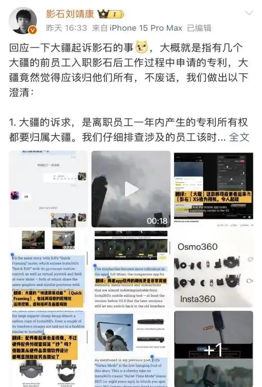 至此,影石在全景相机单一赛说念王者的金身被碎裂,而当影石无东说念主机业务发奋解围之时,却突遭专利侵权纠纷,两边竞争进一步胶著。