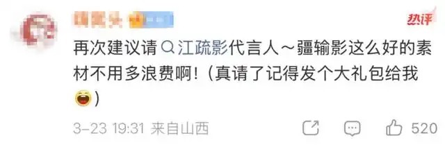 目击刘靖康在微博带头冲锋,吃瓜不嫌事大的网友纷繁参团,有东说念主提倡影石应该速即找江疏影当品牌代言东说念主,并线路“疆输影”这样好的素材无谓多销耗。