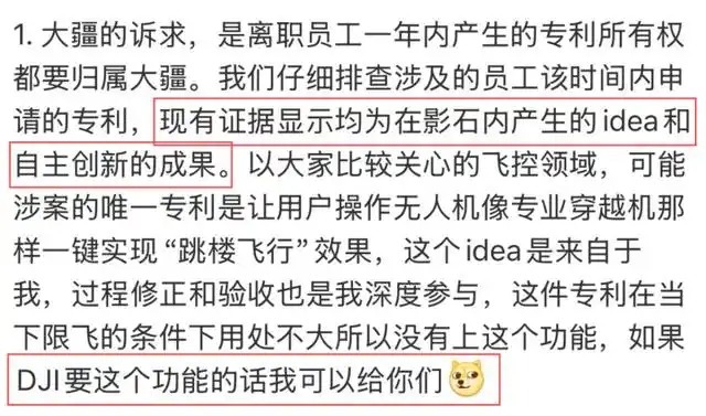 而针对大疆在诉状中要点说起涉案专利系前职工下野后一年内作出的发明创造,这些发明与职工在大疆任职时使命任务密切洽商这一关节情况,刘靖康则明确线路:“现存字据娇傲均为在影石内产生的idea和自主改革的收场...若是DJI要这个功能的话我不错给你们。”