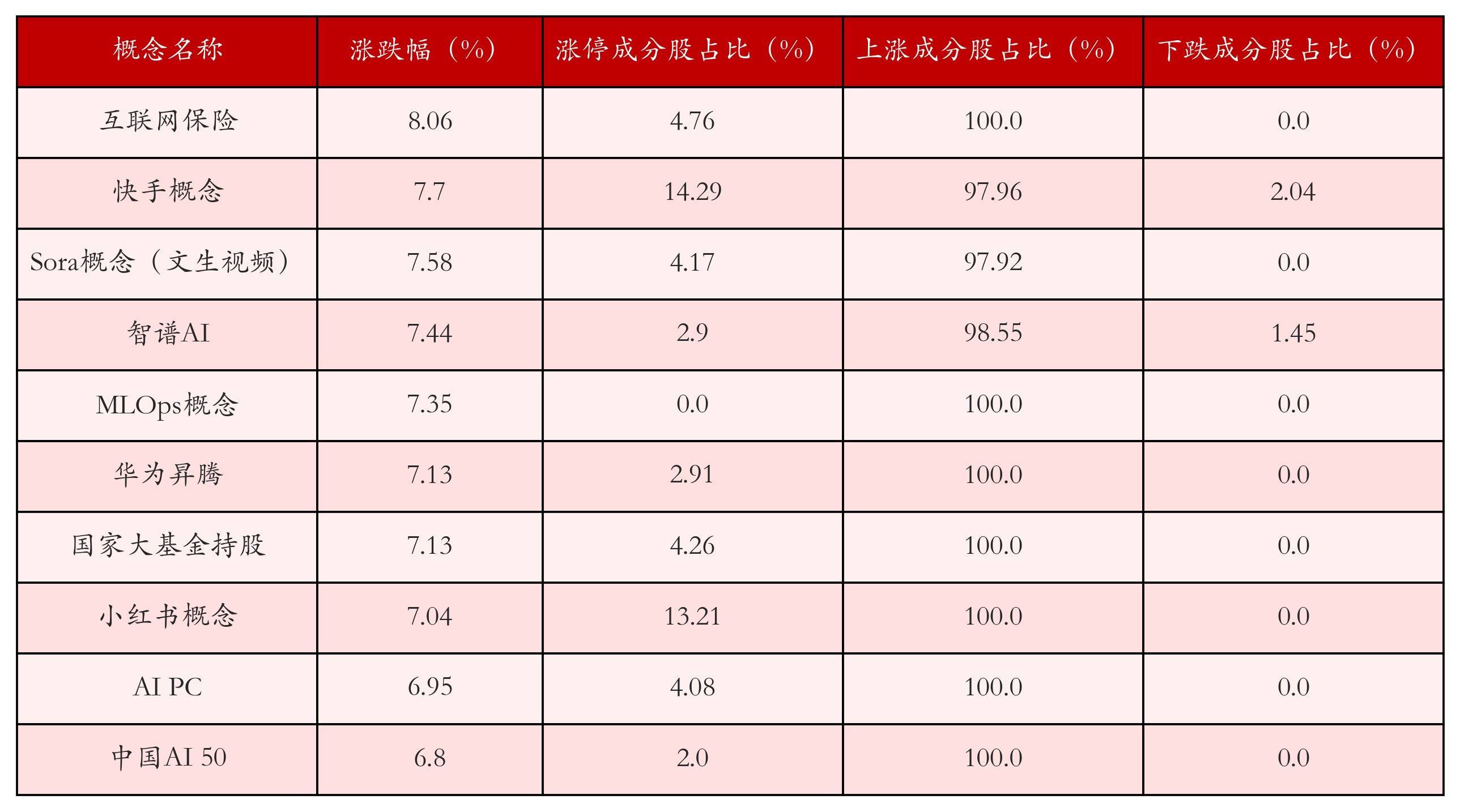 字据A股见解涨跌幅与所对应的股票池详尽分析,涨幅靠前的三个见解板块分裂为:互联网保障、快手见解与Sora见解(文生视频)。排行前10位的见解板块关通盘据见下表: